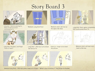 I decided to go with my idea of a boy trick or treating at halloween whilst a car chase was going on. When the boy plays his trick of shooting his guns, the old man believes them to be real and posts sweets through the letter box at him.